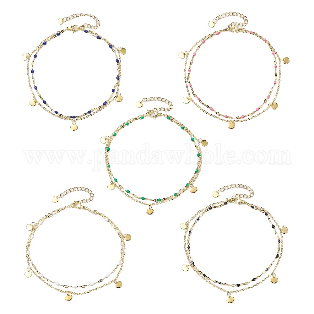 304 браслеты на ногу из двухслойной цепи из нержавеющей стали, Эмаль стиле, с позолоченными подвесками в виде сердечек