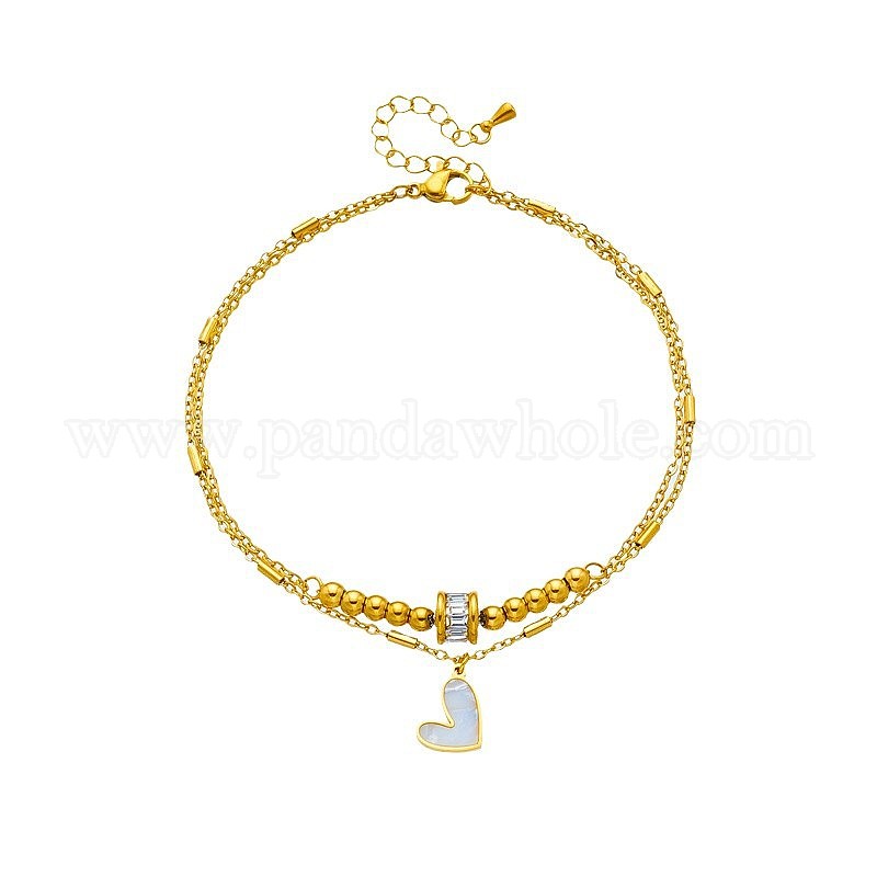• Золотой Браслеты на ногу с подвесками в виде сердца из сплава эмали, двухслойные браслеты для женщин, золотые, 8-1/4 дюйм (210 мм)