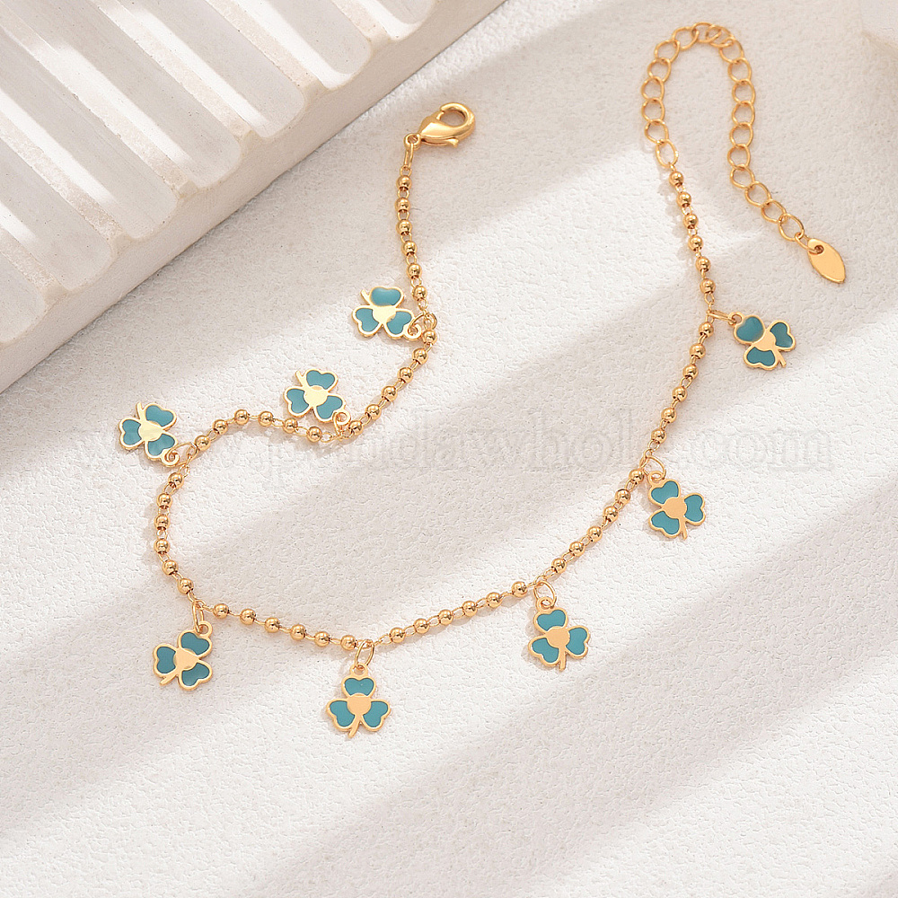 Модные женские браслеты на ногу с подвеской в виде цветка из латуни и эмали, повседневный пляжный подарок ювелирные изделия, золотые (02ZS7P)