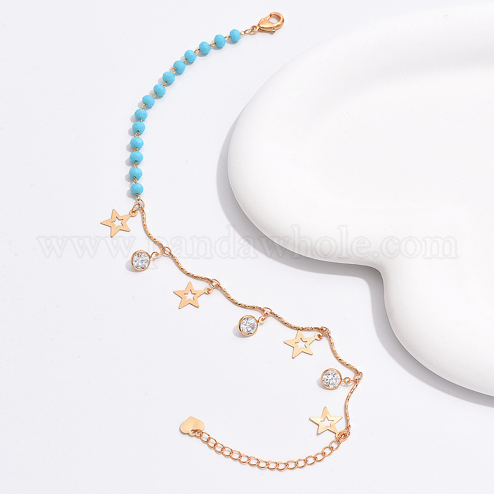 Модные женские браслеты на ногу с кисточками в форме звезды из латуни, простой и универсальный, реальный 18 k позолоченный