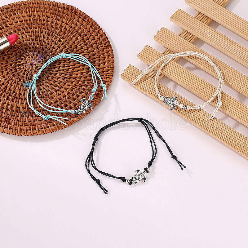 3шт. регулируемые браслеты из сплава черепахового цвета из пенькового шнура
