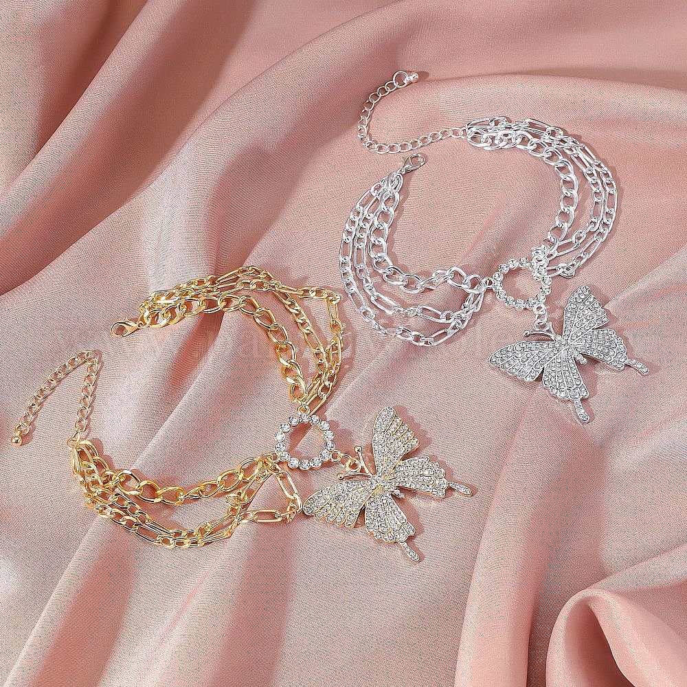 Браслеты на ногу из сплава с бабочками, многослойные, со стразами