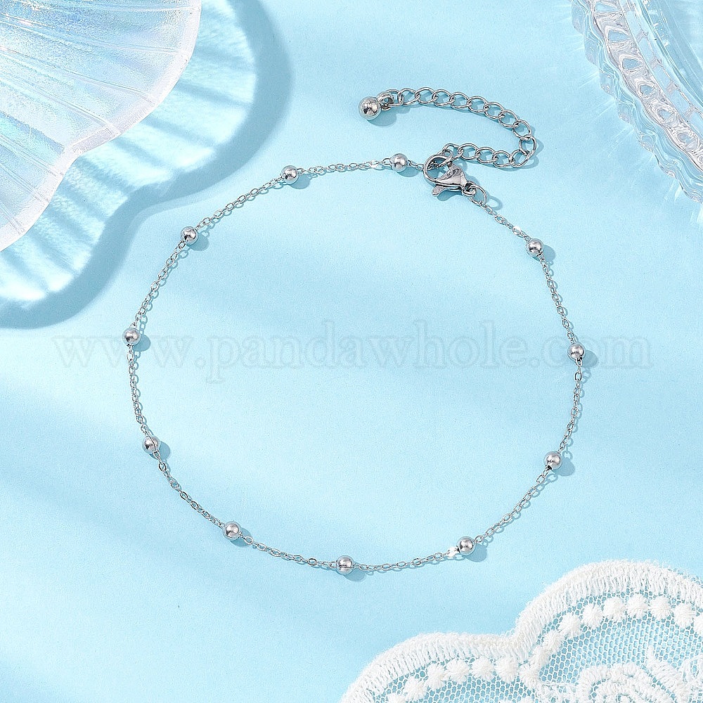 • Нержавеющая Сталь Цвет 304 браслеты на щиколотку из нержавеющей стали с шариками и цепочкой, цвет нержавеющей стали, 9-1/8 дюйм (230 мм)