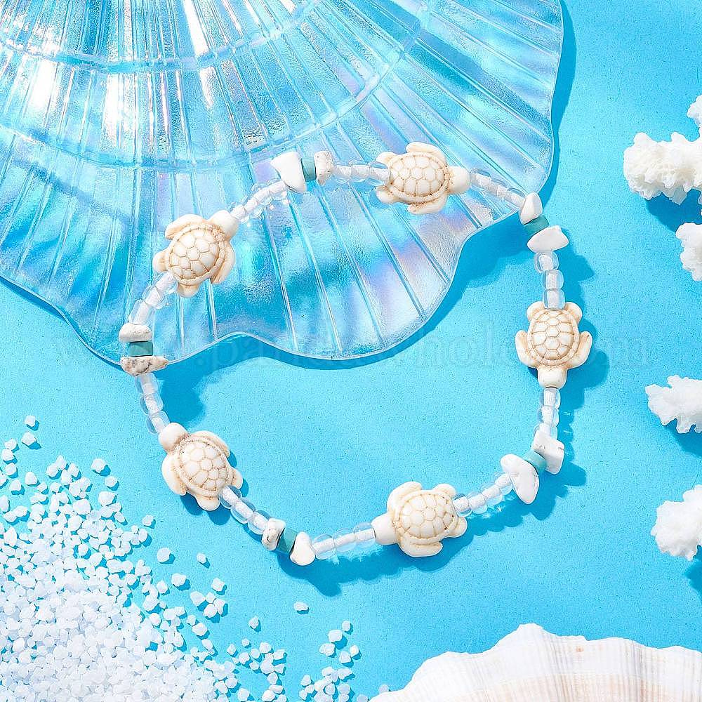 Летние пляжные браслеты с черепахой, эластичные браслеты на ногу из окрашенной синтетической бирюзы, магнезита и стеклянных бусин (032SA5)