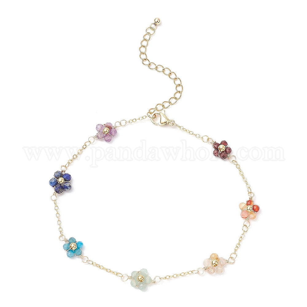 • Смешанные камни Чакра 304 браслеты на ногу из нержавеющей стали, латуни, натурального зеленого авантюрина, граната, аметиста, апатита, золота, рутилового кварца, сердолика, лазурита в виде цветка, 9-1/8 дюйм (232 мм)