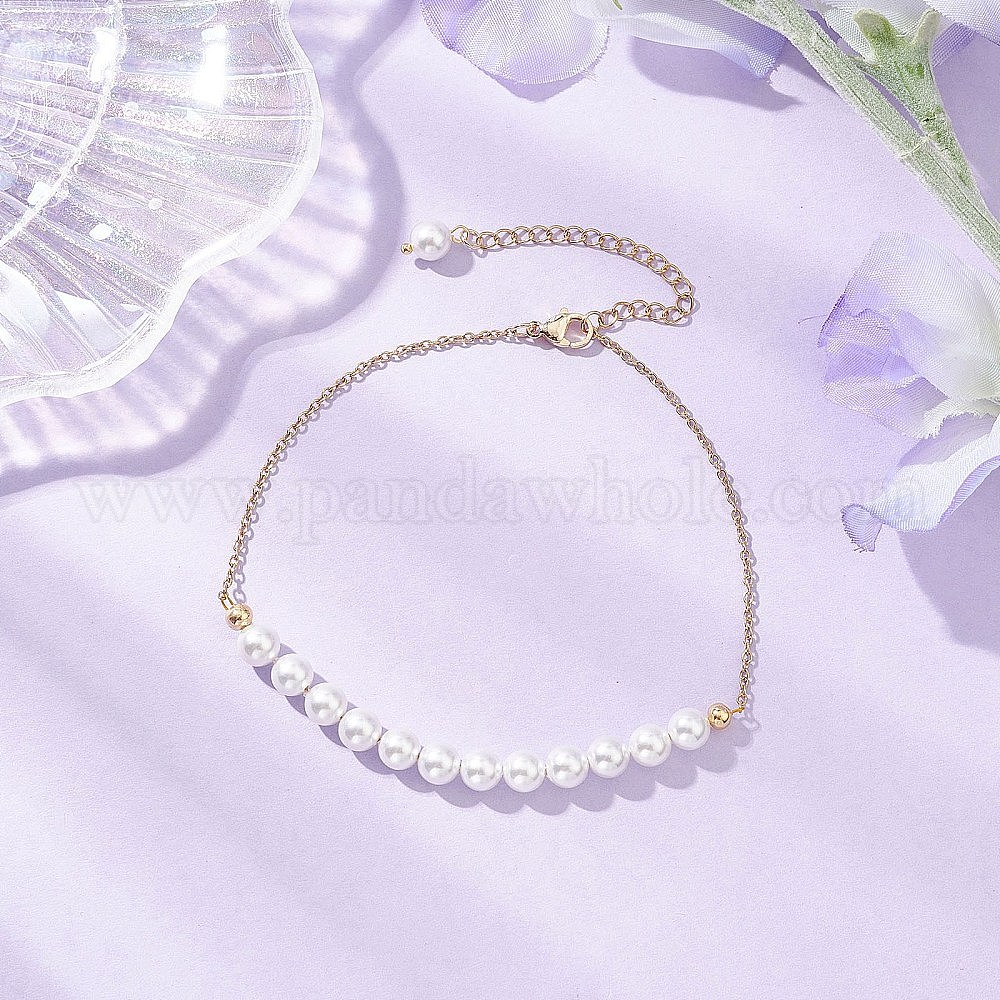 Круглые бусины из ракушек и жемчуга, с 304 кабельными цепочками из нержавеющей стали, золотые