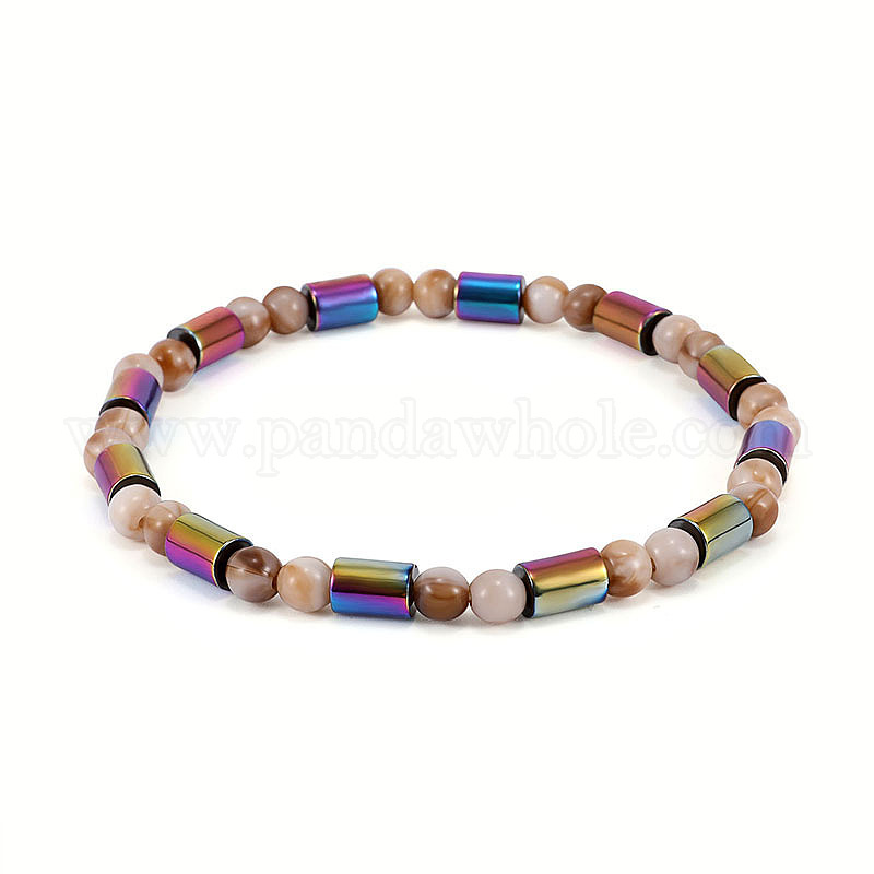 Эластичные браслеты на лодыжку из синтетического немагнитного гематита с гальваническим покрытием и круглыми акриловыми бусинами для женщин