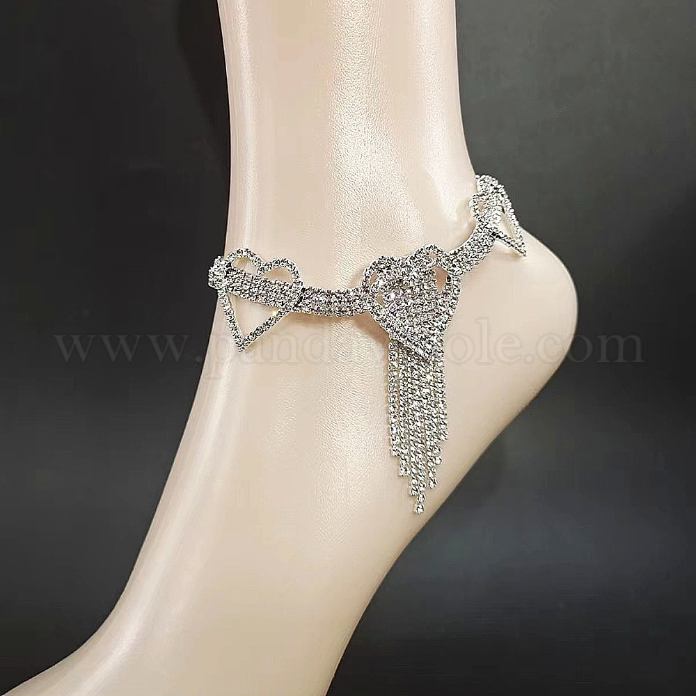 Браслеты на лодыжку из сплава с хрустальными стразами в форме сердца и кисточкой для женщин