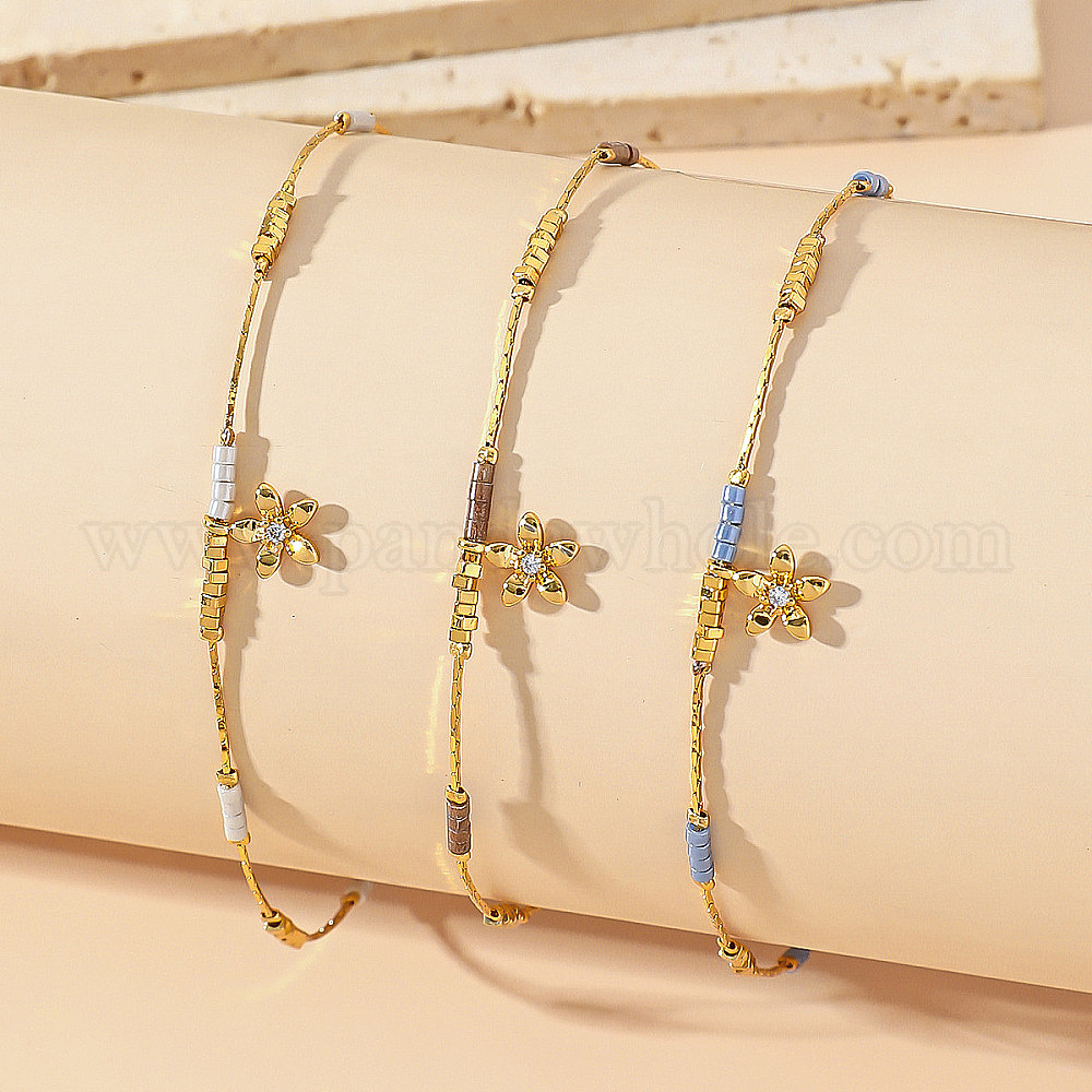 Браслет на лодыжку из нержавеющей стали и стекла с подвеской в виде цветка, инкрустированной прозрачными кубическими циркониями 304