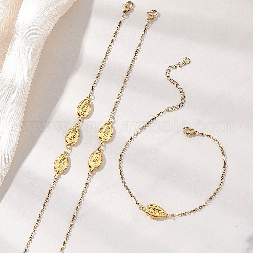 • Золотой 3 шт. 3 стили летние пляжные 304 браслеты на лодыжку из нержавеющей стали в форме ракушки для женщин, золотые, 8.86~9.17 дюйм (22.5~23.3 см), 1 шт / стиль