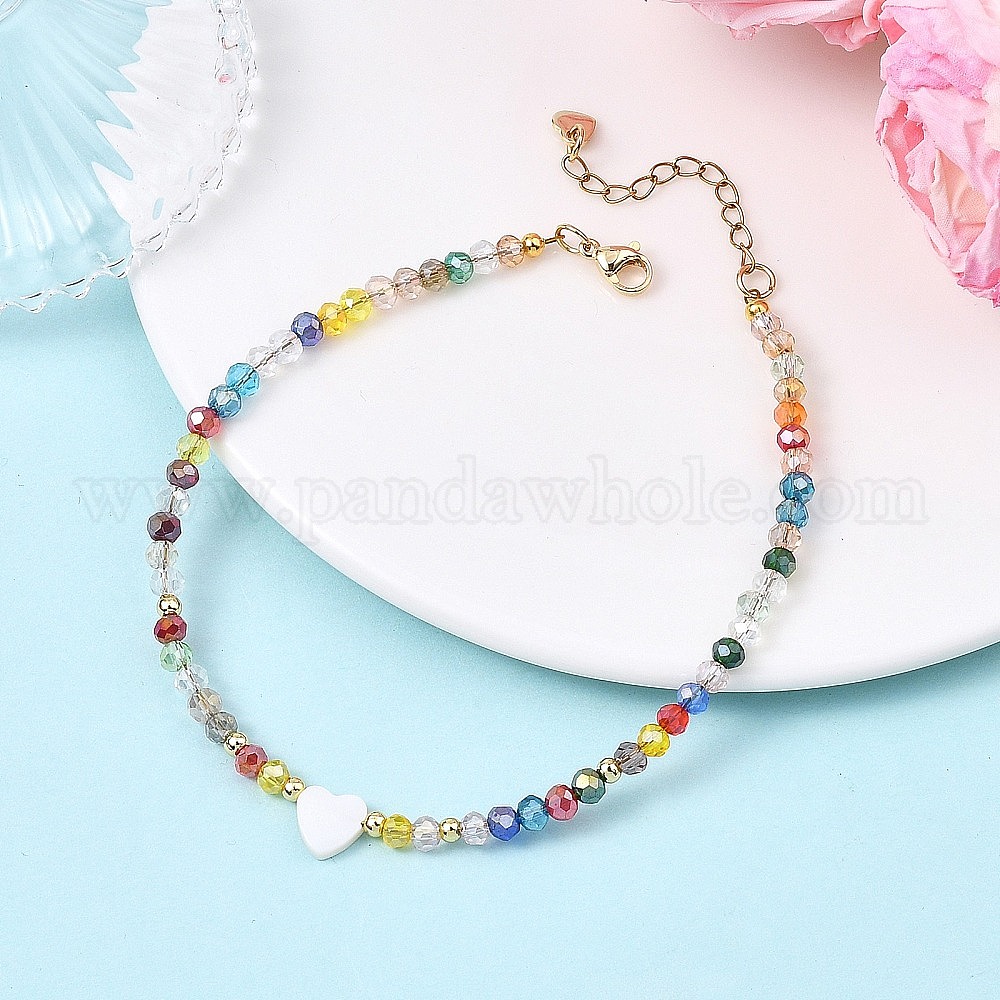 Браслеты на лодыжку для женщин из натуральных пресноводных ракушек в форме сердца и граненых ронделей из гальванически покрытых стеклянных бусин., золотые