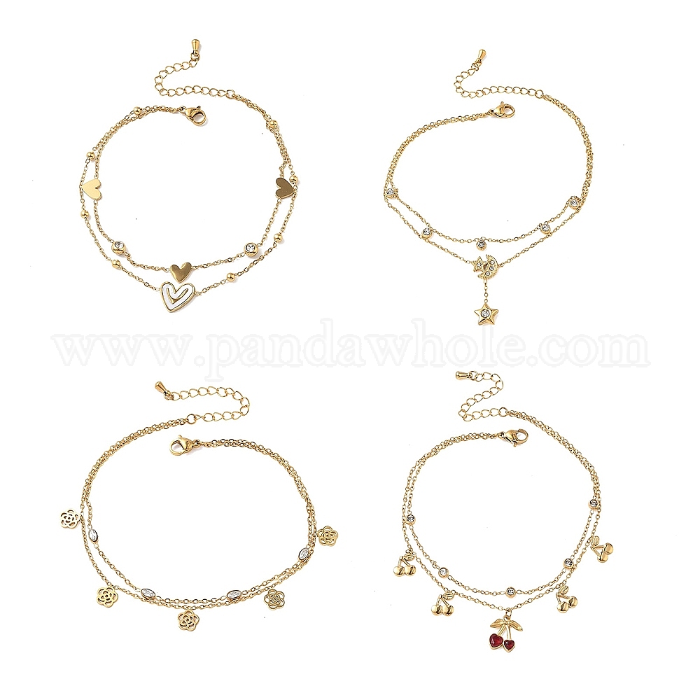 304 Подвеска из нержавеющей стали с прозрачными кубическими циркониями 2 Браслеты на лодыжку для женщин, золотые