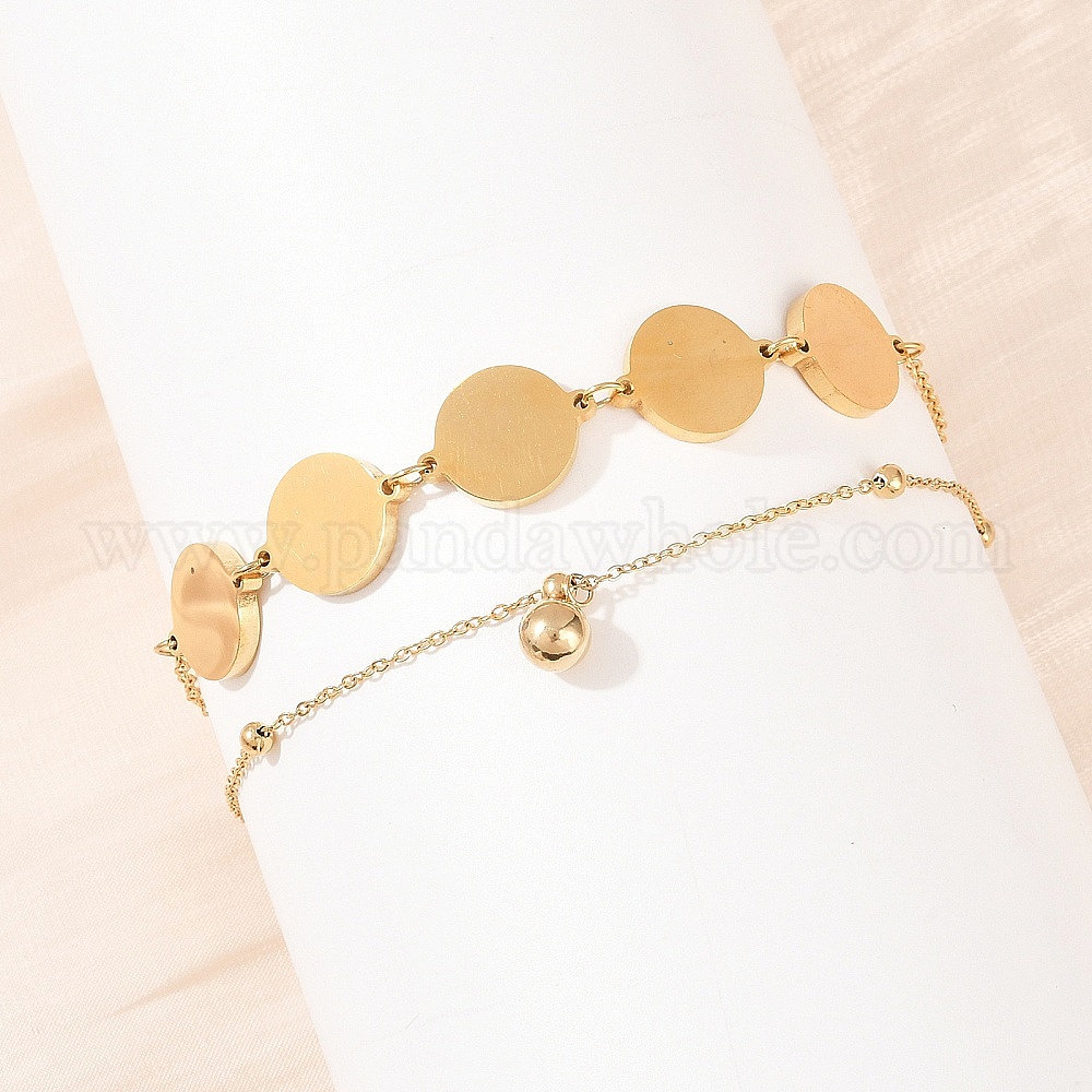 Плоские круглые 304 цепочки из нержавеющей стали, двухслойные браслеты на лодыжку, браслеты-талисманы для женщин, ионное покрытие (ip), долговечный