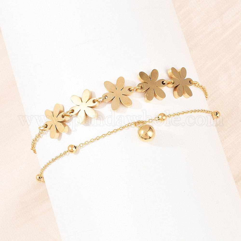 Цветок 304 цепочки из нержавеющей стали, двухслойные браслеты на лодыжку, браслеты-талисманы для женщин, ионное покрытие (ip), долговечный