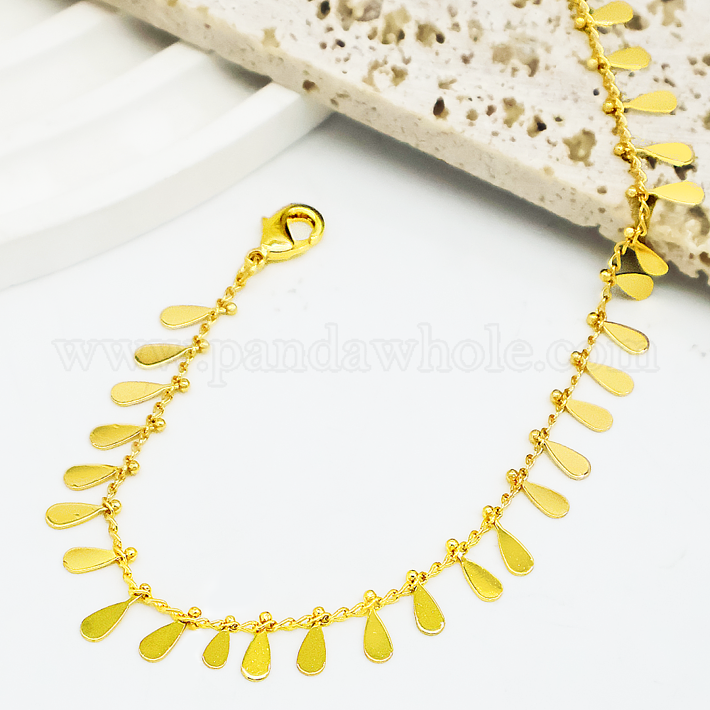 Регулируемые латунные браслеты на лодыжку с подвеской в форме капли и кисточкой для пляжа, повседневная и праздничная одежда
