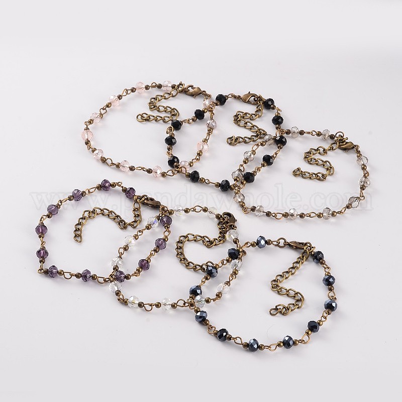 • (52) Непрозрачная лаванда Античный бронзовый железный стеклянной бусины сандалеты, с латунными карабин-лобстерами , разноцветные, 205 мм