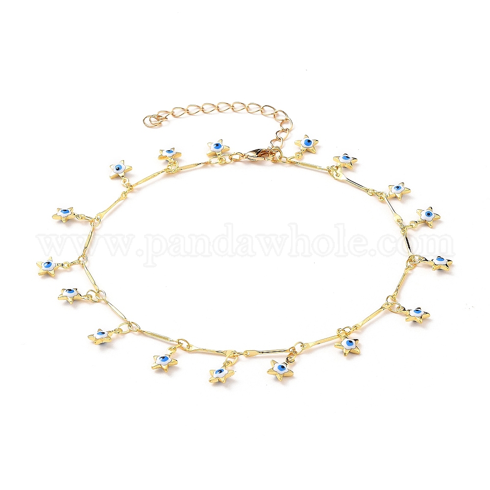 Браслеты из латуни с цепными звеньями, с эмалированной звездой с оберегами от сглаза, реальный 18 k позолоченный