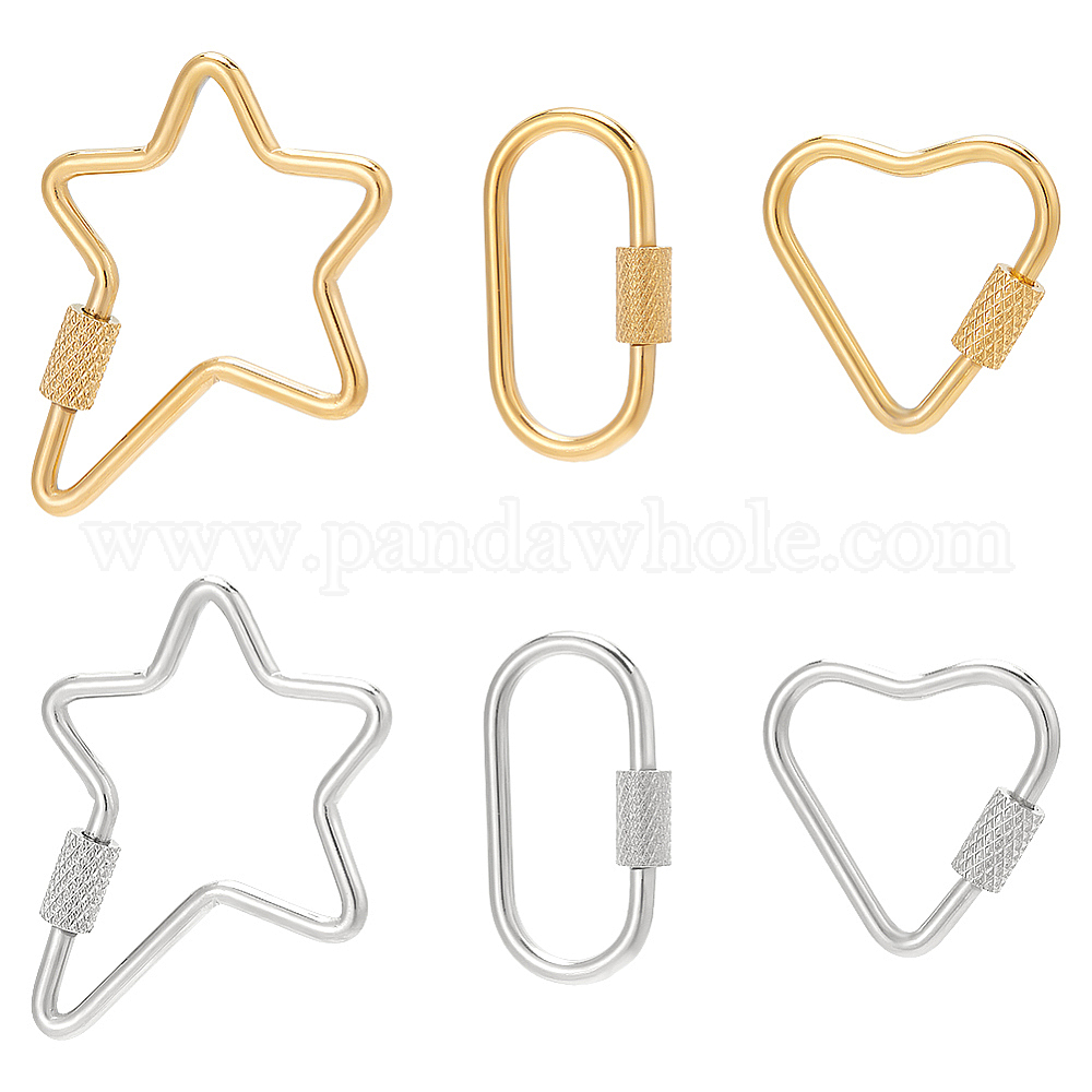 6 шт. 6 стили 304 подвески-замки с винтовым карабином из нержавеющей стали, для изготовления ожерелий, сердце и звезда и овал, разнообразные