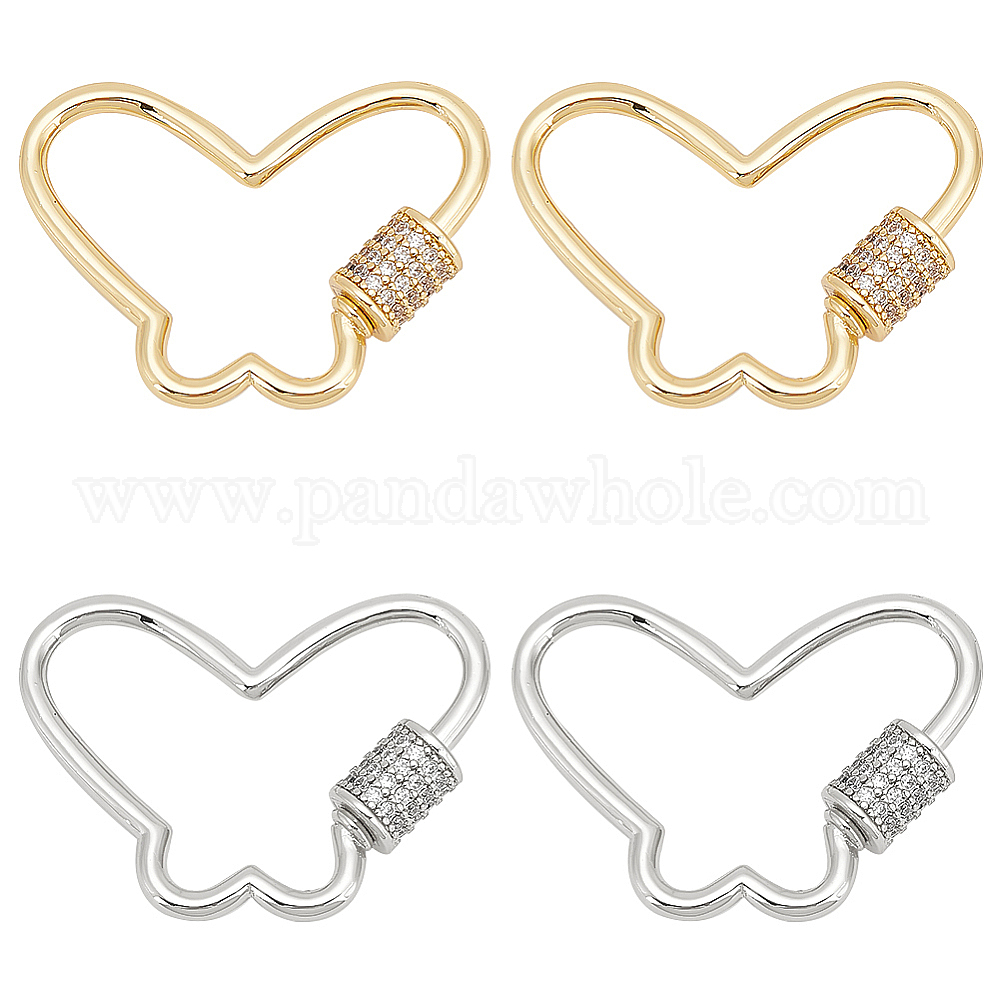 4 шт. 2 цвета бабочка латунь микро паве прозрачный кубический цирконий винтовой карабин замок подвески, для изготовления ожерелий