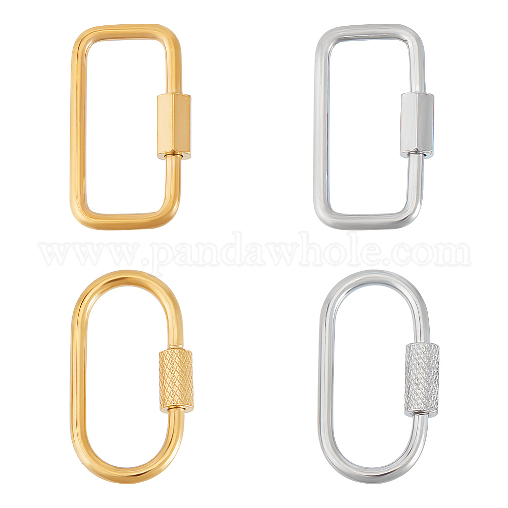 4 шт. 4 стили ионное покрытие (IP) 304 нержавеющая сталь винтовой карабин замок подвески, для изготовления ожерелий, овальные и прямоугольник