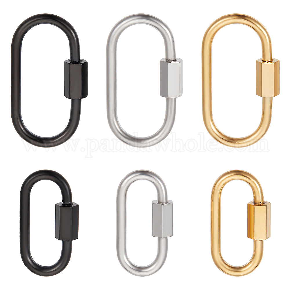 6 шт. 6 стили 304 подвески-замки с винтовым карабином из нержавеющей стали, для изготовления ожерелий, овальные (02Q6SC)