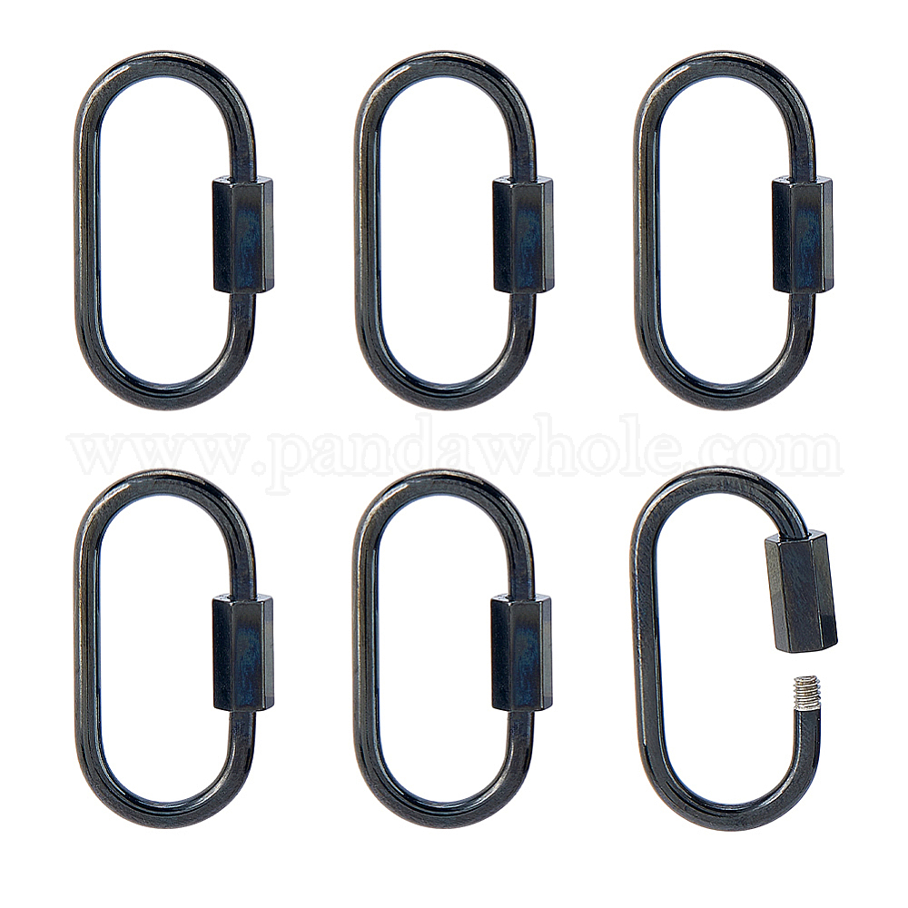 • Черный 6 шт. 304 подвески с винтовым карабином из нержавеющей стали, для изготовления ожерелий, быстрые ссылки, овальные, чёрные, 26x14x2 мм, Винт: 8x4 мм