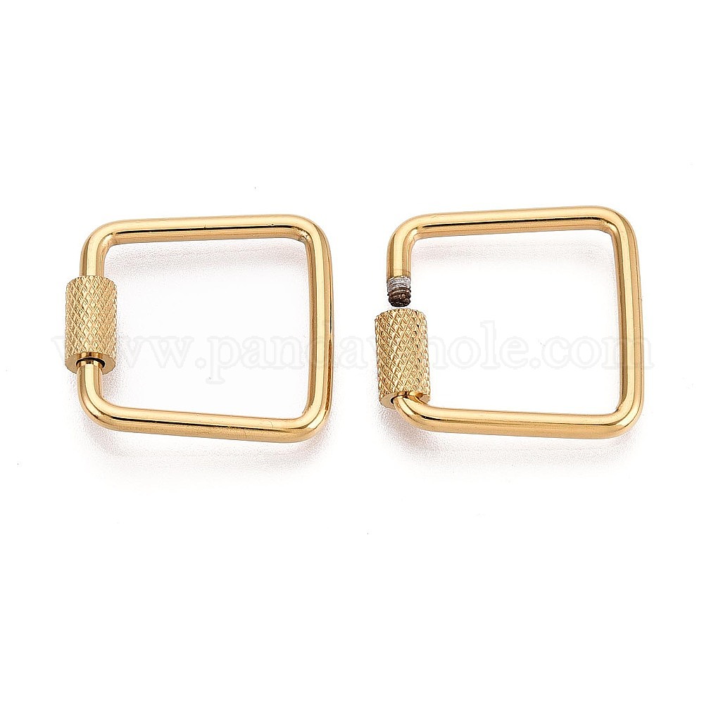 • Настоящее золото 18K 304 карабин с замком из нержавеющей стали, фактурный квадрат, ионное покрытие (ip), реальный 18 k позолоченный, 20x20x2 мм