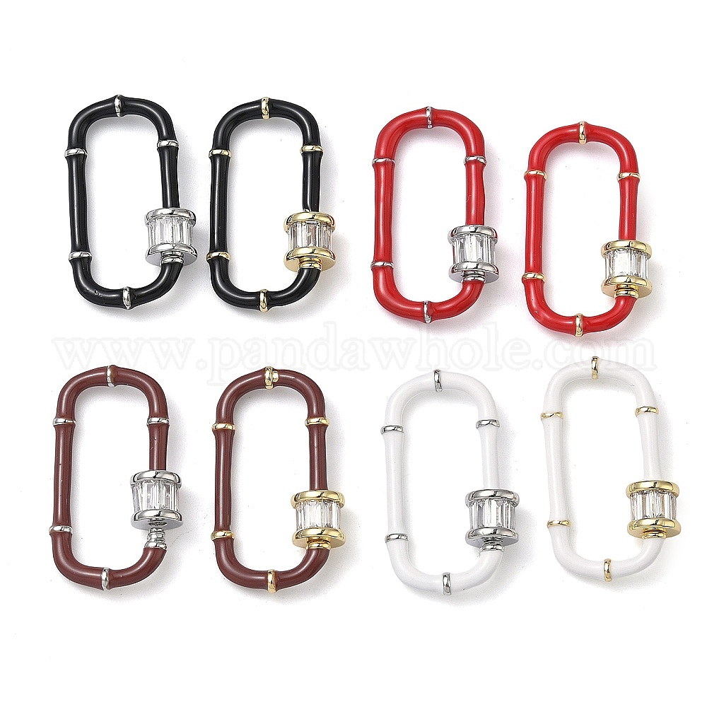 Овальный латунный микропаве прозрачный кубический цирконий фиксирующий карабин, с эмалью, долговечный, стойки покрытие, без свинца и без кадмия