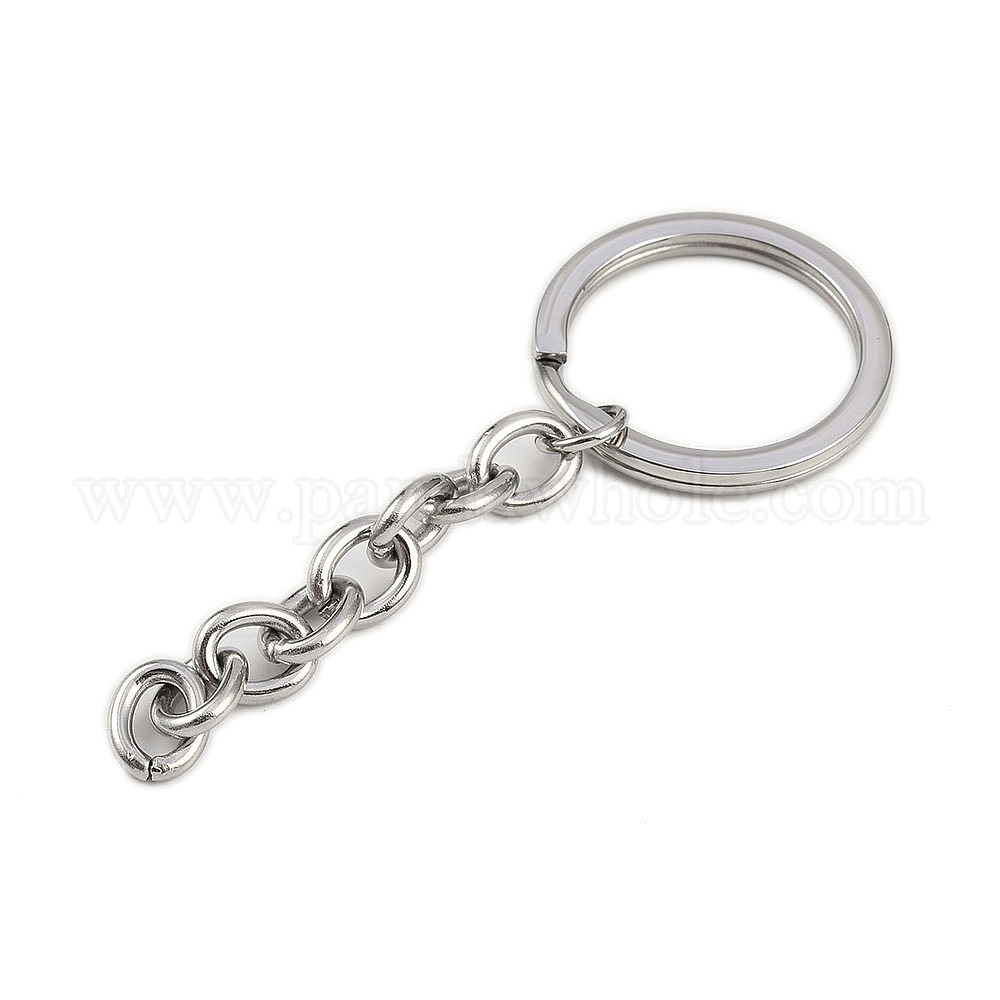 • Нержавеющая Сталь Цвет Полировка 304 кольца для ключей из нержавеющей стали, брелок для ключей, с удлиненными кабельными цепями, цвет нержавеющей стали, 84 мм, брелоки: 30x2.8 мм