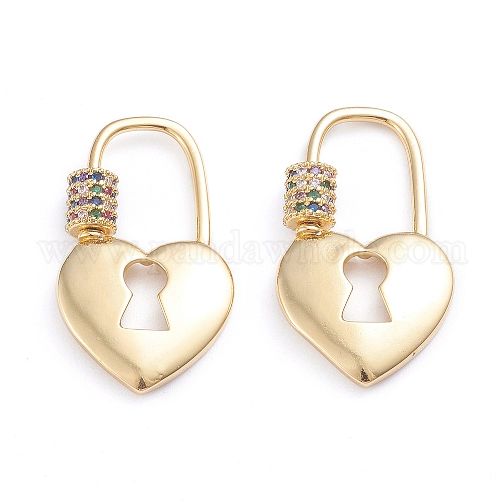 • Разноцветный Латунные микропаве, кубический цирконий, винт, карабин, подвески с замком, для изготовления ожерелий, быстрые ссылки, сердце замок, реальный 18 k позолоченный, красочный, 28x16.5x2 мм, Винт: 5.5x5 мм
