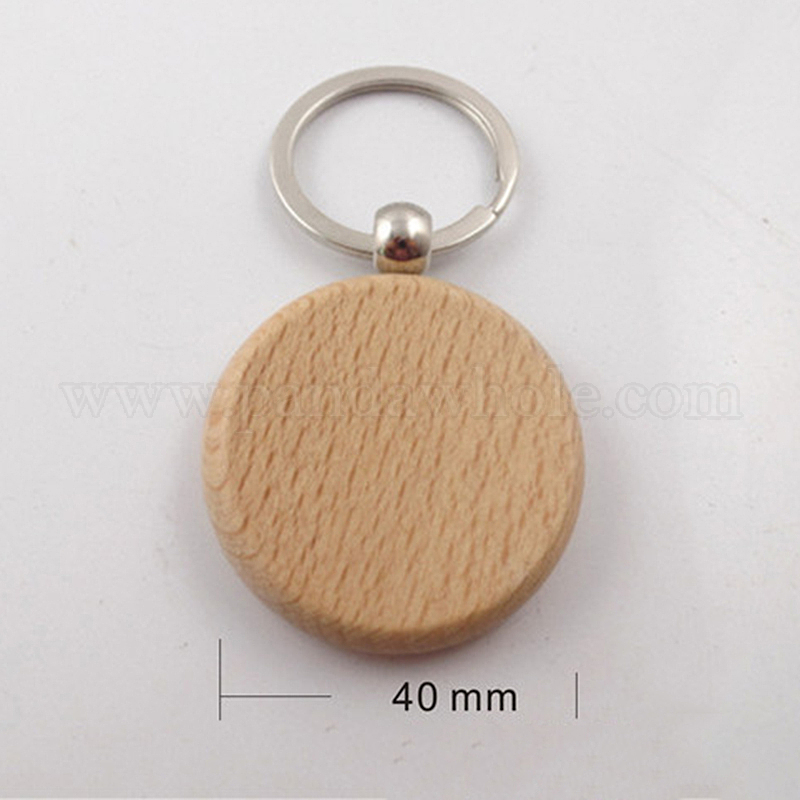 • Цвет Древесины Неокрашенные деревянные брелки, с фурнитурой из цинкового сплава, плоско-круглые, деревесиные, 4 см