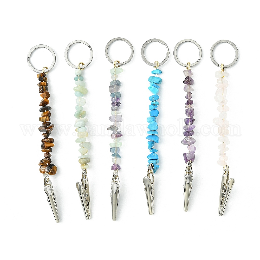 • Смешанные камни Натуральный и синтетический брелок, с латунной проволокой, 304 разрезные кольца для ключей из нержавеющей стали и железные зажимы типа «крокодил», 12 см