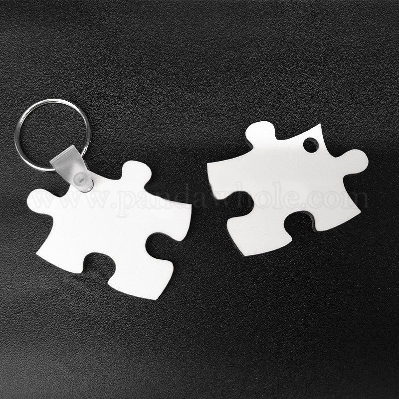 Сублимационные двусторонние пустые брелки из мдф, с деревянными подвесками из твердой доски в форме пазла и железными кольцами для ключей