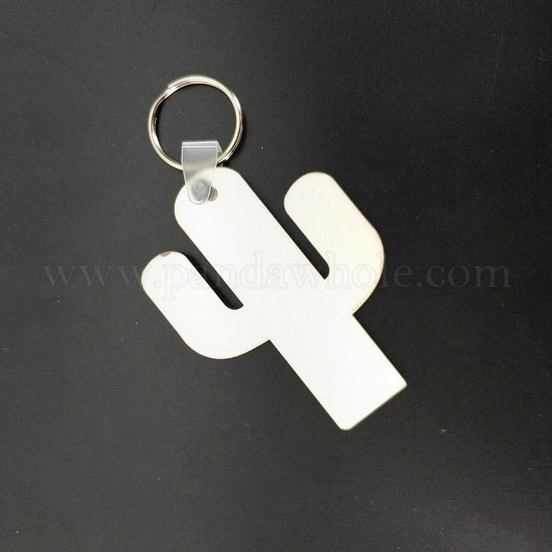 Сублимационные двусторонние пустые брелки из мдф, с деревянными подвесками из твердой доски в форме кактуса и железными кольцами для ключей