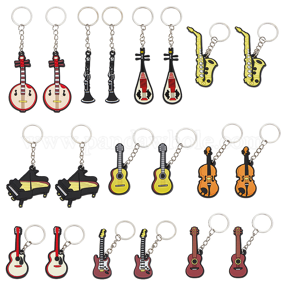 20шт 10 стиль силиконовые подвески брелки, с железной фурнитурой с платиновым покрытием, скрипка и рояль и саксофон