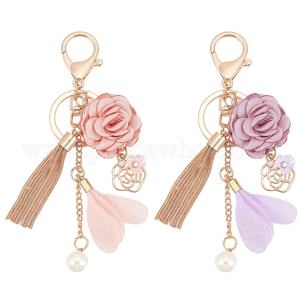 2шт 2 цветной брелок из сплава, с кисточкой из сплава и полиэстера и застежками-карабинами, цветок