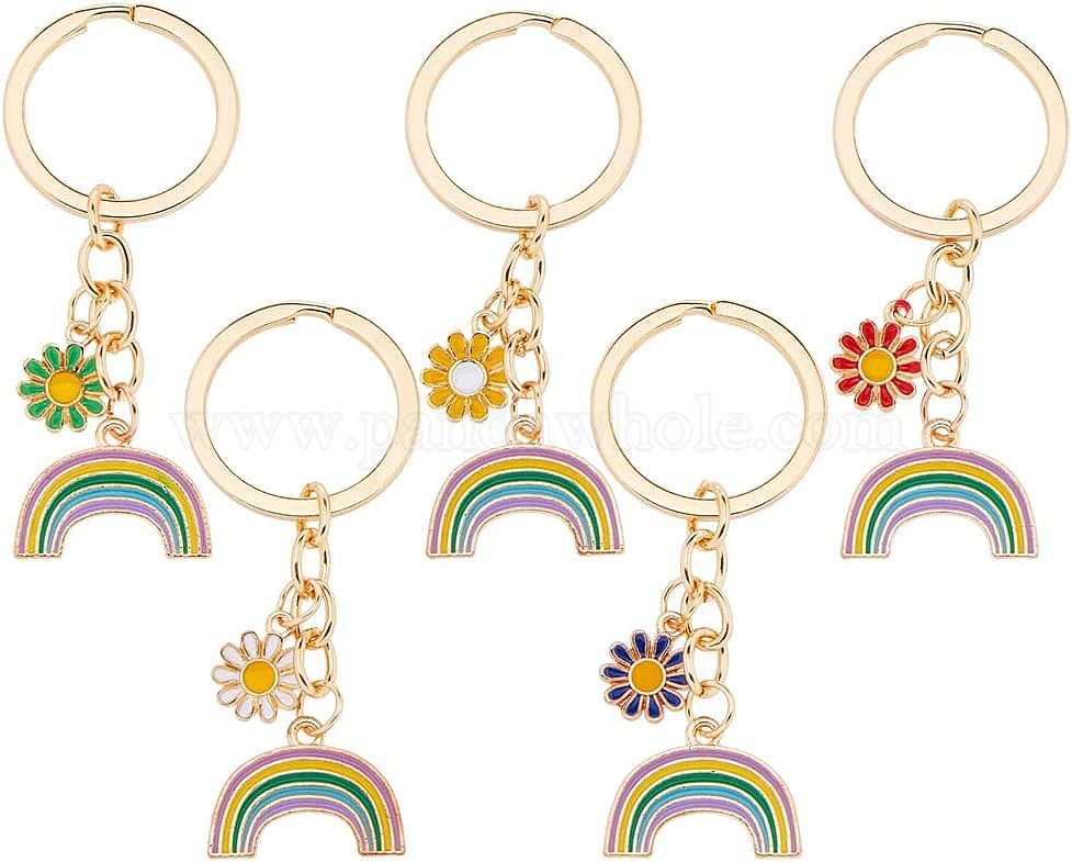 Брелки с подвеской из эмалевой эмали из сплава радуги и маргаритки: около 70 мм, ромашка: 14x11x2мм, Радуга: 17.5x24x1.5 мм, Кольцо: 30x2 mm, 5 цветов, 1 шт / цвет, 5 шт;