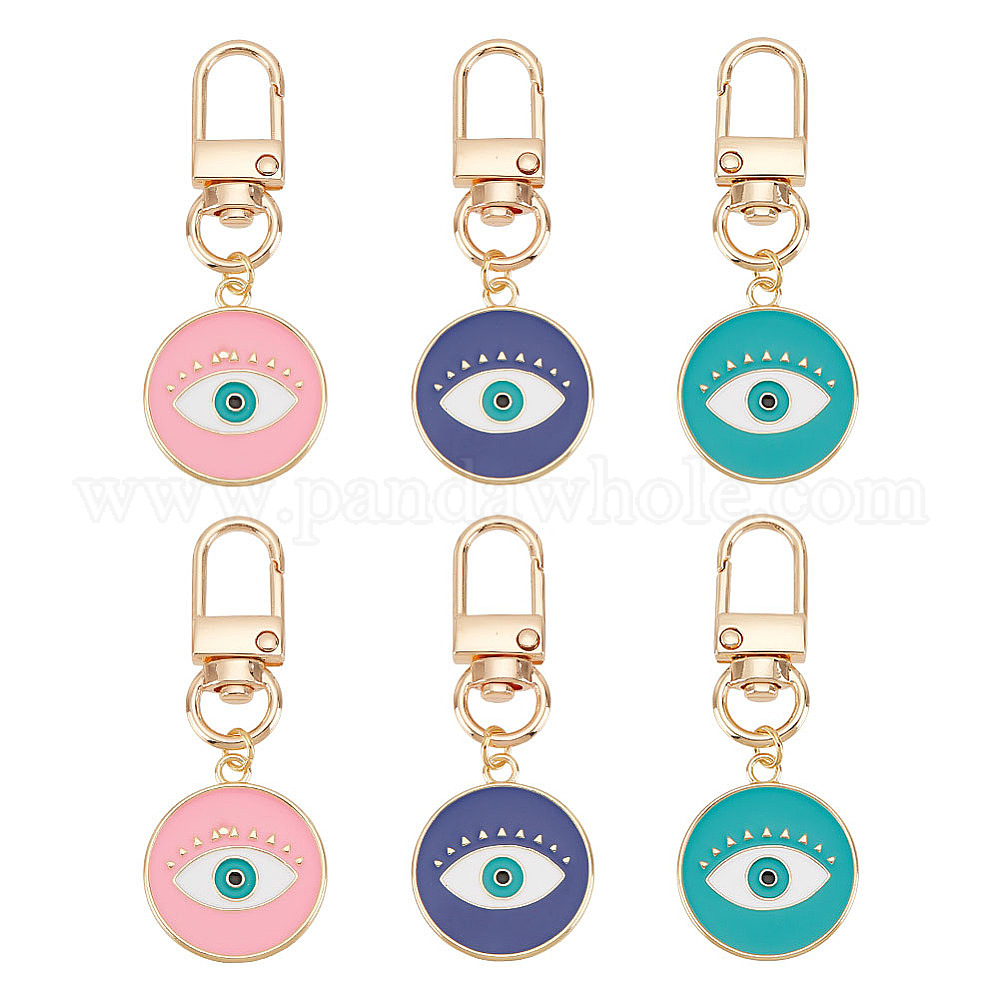 6шт брелок из сплава эмали, с поворотными застежками-карабинами из сплава и 304 соединительными кольцами из нержавеющей стали, плоские круглые с глаз