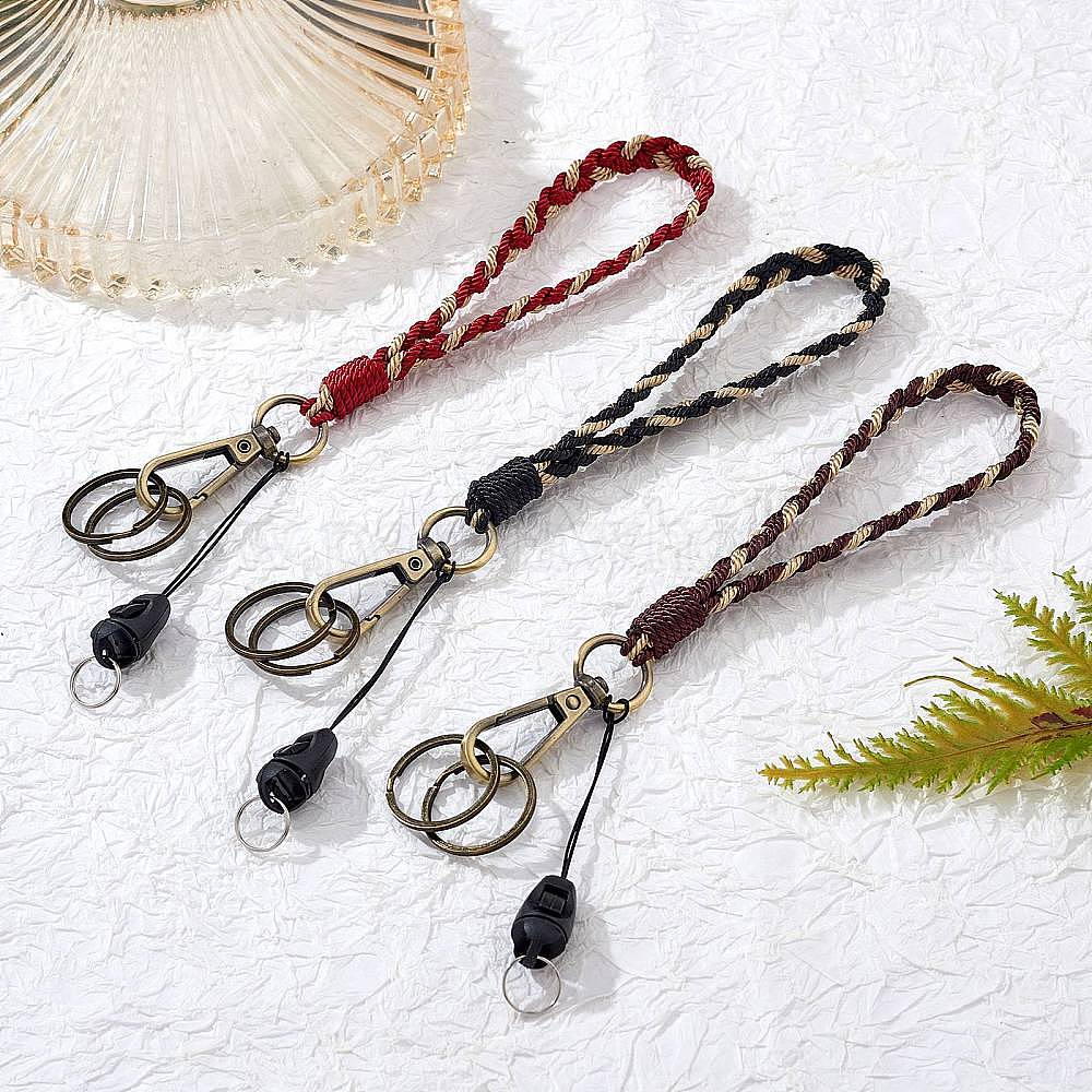 Брелок на запястье в стиле бохо макраме, ручной плетеный ремешок на запястье с кисточкой и портативной мобильной веревкой для защиты от потери для женщин