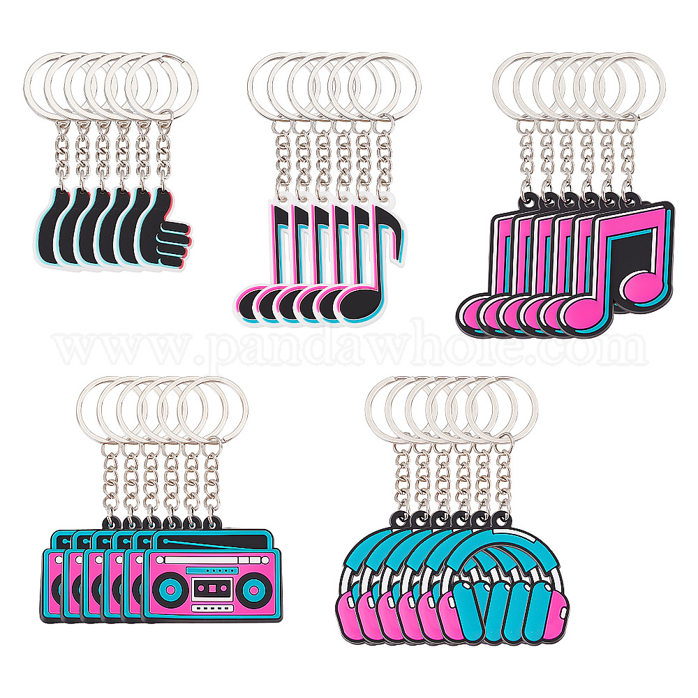 60шт 5 стиль ПВХ подвеска брелок, с железной фурнитурой, радио и музыкальная нота и гарнитура