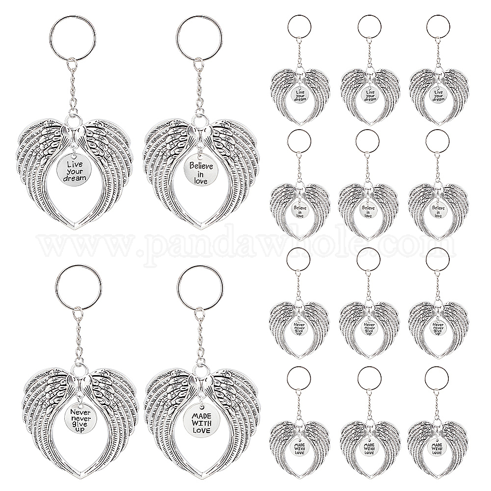 16шт 4 стиль крыла форма сплава подвеска брелок, с железной фурнитурой, плоские круглые со словом