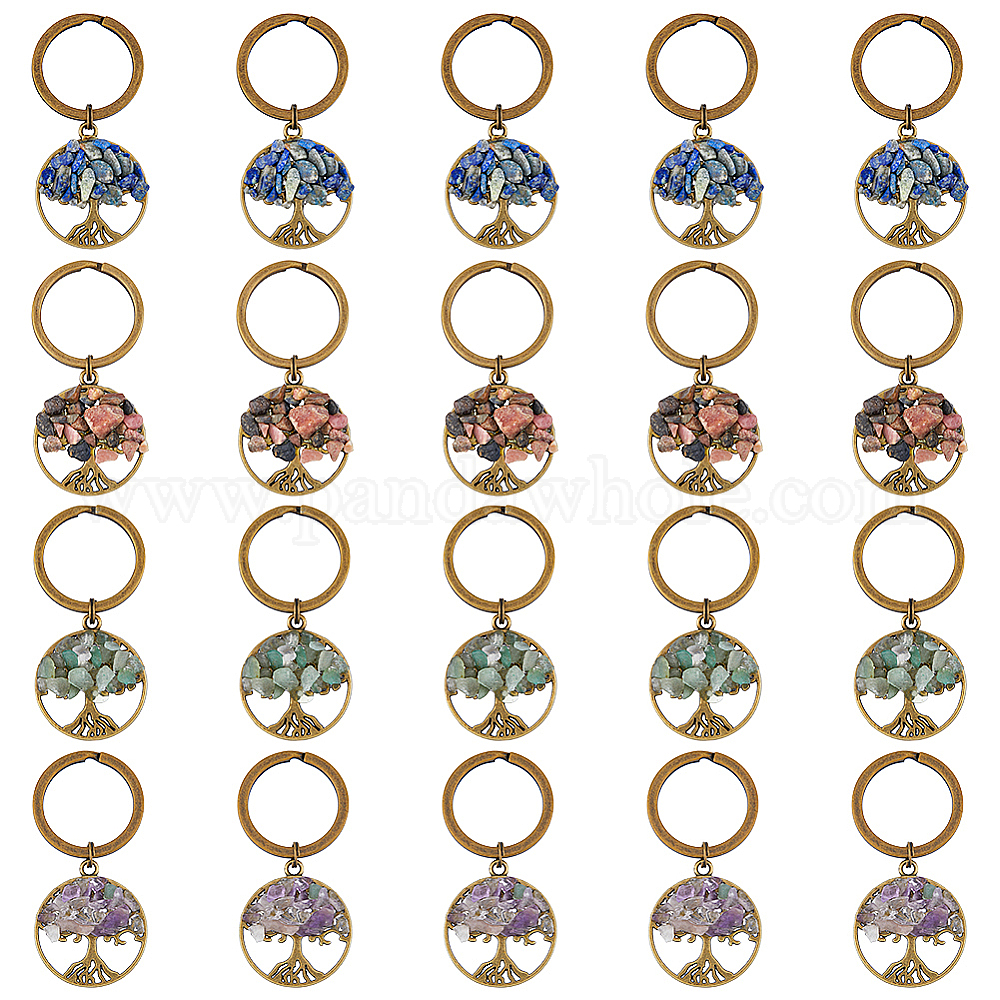 Сплав брелок, с драгоценными камнями чип бисера, плоские круглые с дерева жизни