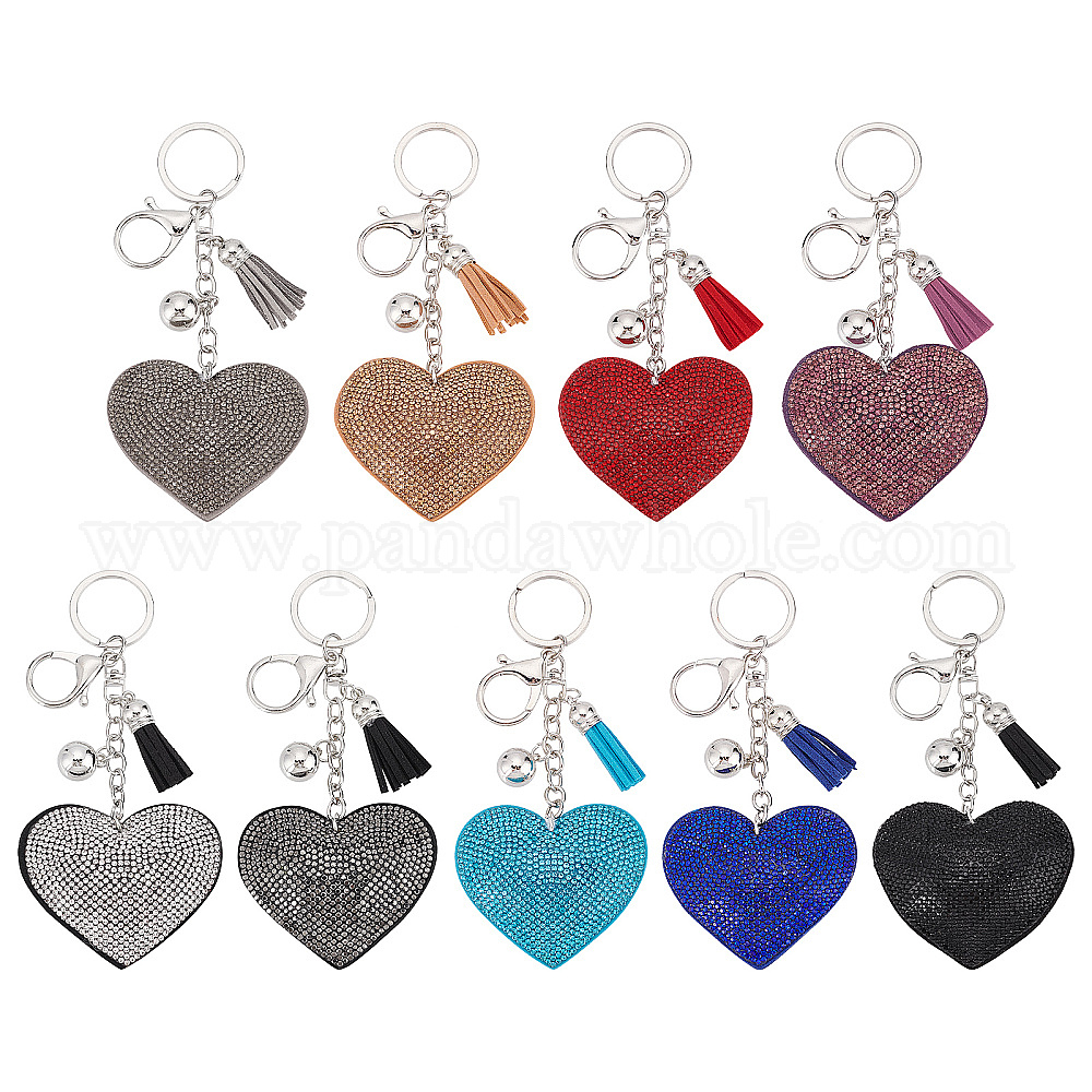 9 шт 9 стиль День святого Валентина полный смоляной горный хрусталь кулон брелок, с фурнитурой сплавочной и кисточкой, сердце (02FHRX)
