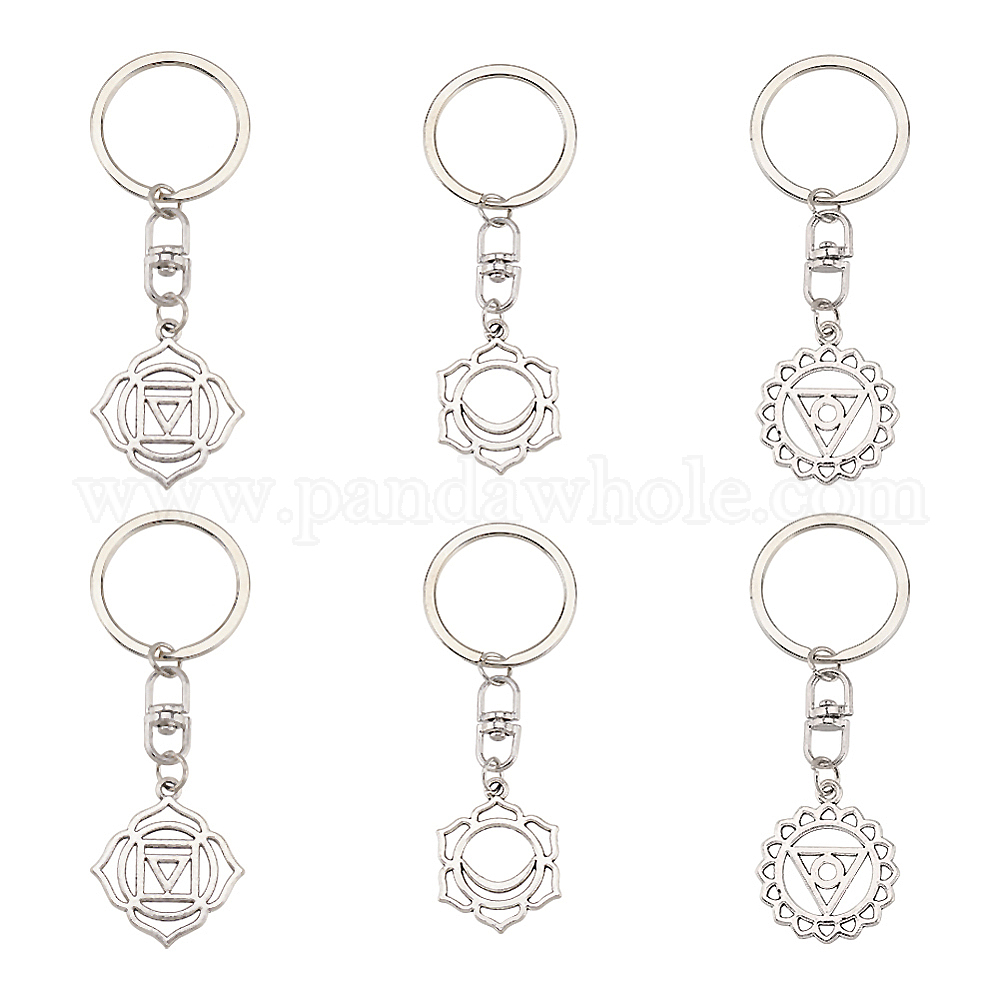 • Mixed Shapes 6 шт 3 стиль чакра сплав символ кулон брелки, кулон с украшением для автомобильной сумки, свадхистана/вишуддха/муладхара, разнообразные, 8.2~8.4 см, 2 шт / стиль