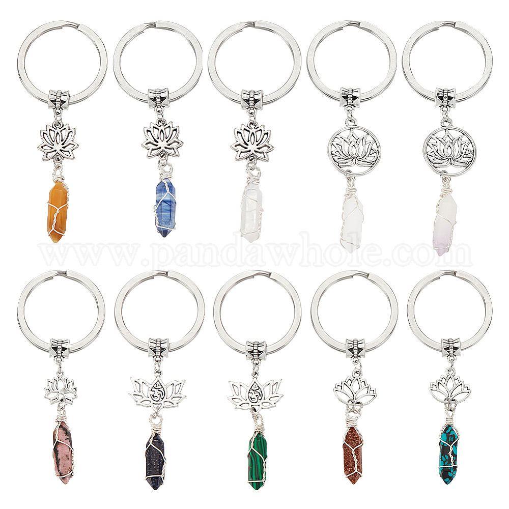 10 брелок с кулоном в виде лотоса из сплава в тибетском стиле и драгоценными камнями в виде пули, с 304 брелоками для ключей из нержавеющей стали