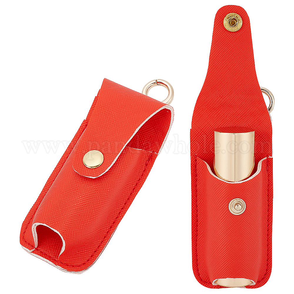 Сумки для хранения губной помады из искусственной кожи, портативный органайзер для бальзама для губ для женщин, с брелком из сплава светло-золотистого цвета, прямоугольные