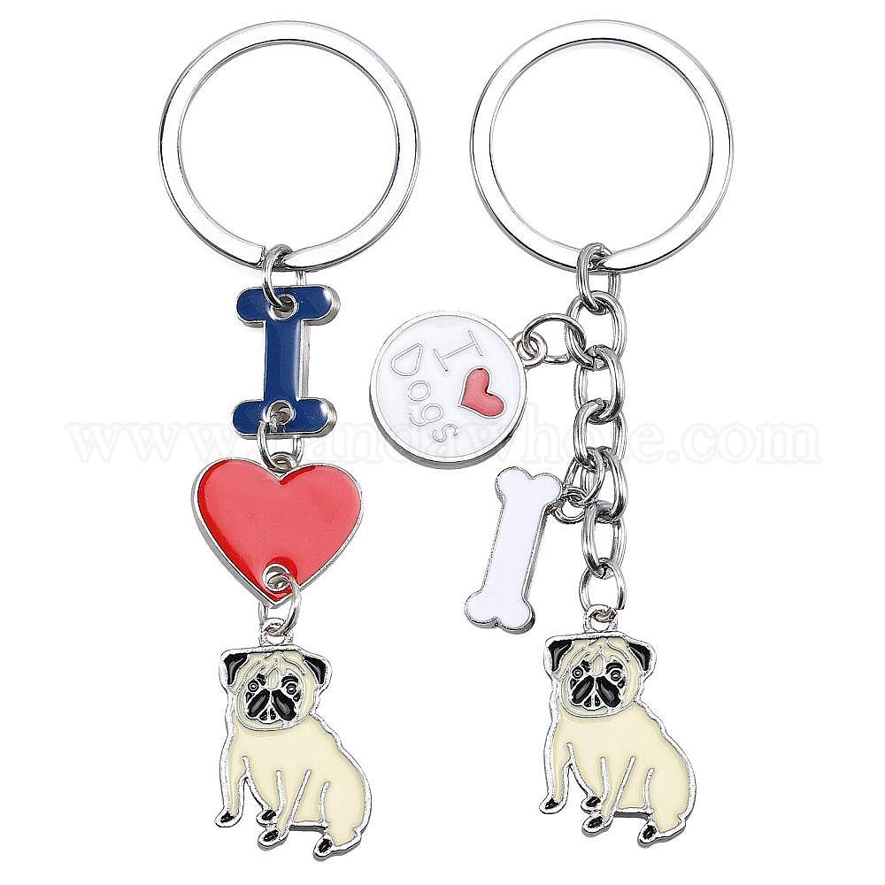 Wewaysmile 2 шт. собака брелок автомобильный брелок животное кулон брелок прекрасный собака брелок портативный металлический брелок подарок для любителей домашних животных день рождения щенка тематические вечерние поставки (мопс)