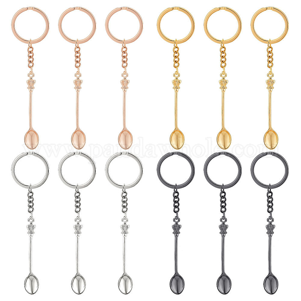 • (52) Непрозрачная лаванда 12 шт 4 цвета сплава мини корона ложка кулон брелок, с железным кольцом, разноцветные, 9.6 см, 3 шт / цвет