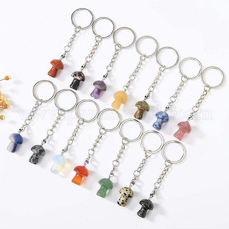Брелок-гриб из натуральных и синтетических драгоценных камней, с железной фурнитурой (02KATR)