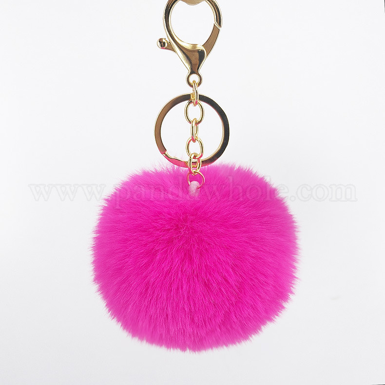 • skin pink Пушистый женский брелок с помпоном, Подвеска-подвеска для автомобиля с милым мехом кролика